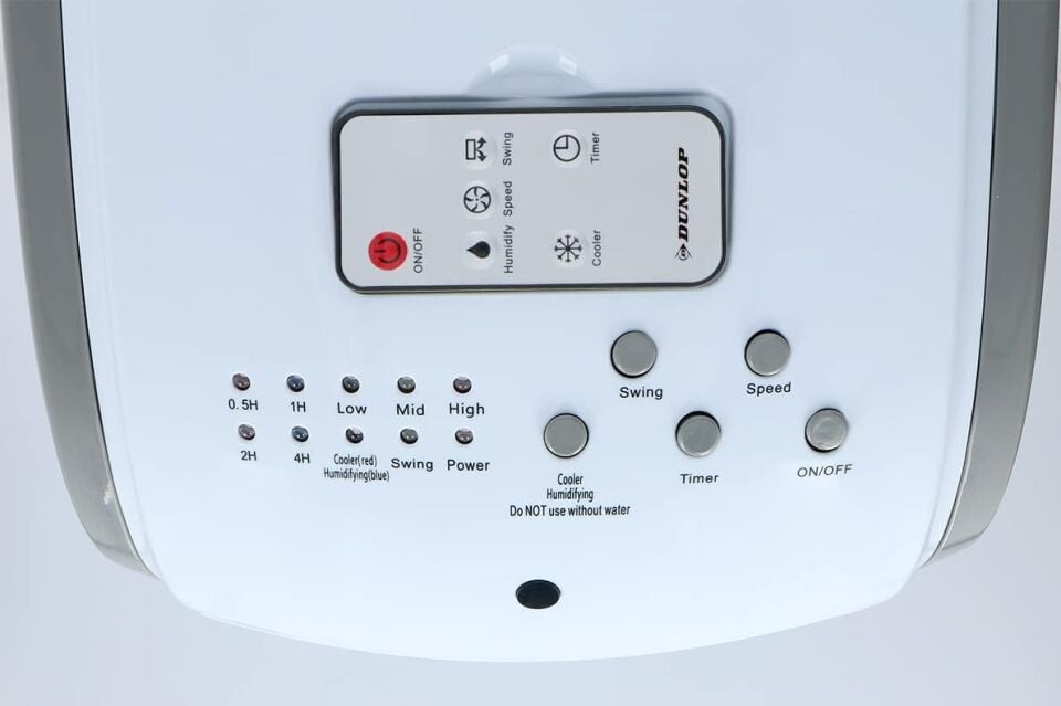 3'ü 1 arada - Bu Dunlop hava soğutucu, havayı soğutmanın yanı sıra hem fan hem de nemlendirici olarak da işlev görür. Fan modunda 3 hıza sahiptir: düşük, orta ve yüksek. Nemlendirici olarak, daha sağlıklı bir iç mekan iklimine katkıda bulunur.